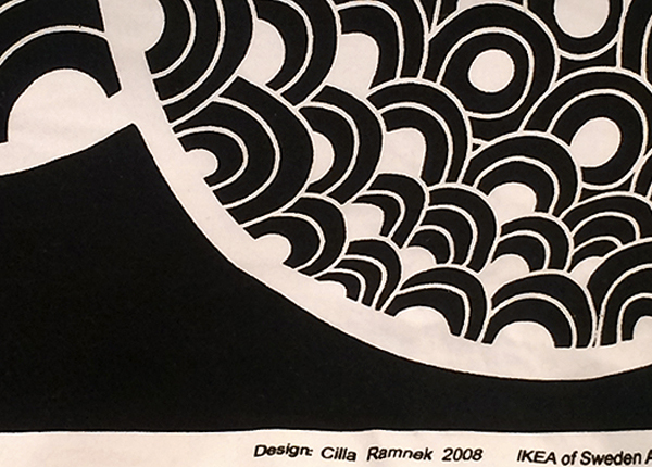 Simultaneously bold and delicate, this black and white printed cotton fabric produced for IKEA in 2008 is an inspiration: framed on a wall, used a table cloth, pillows or upholstery it will add instant drama to a room. Condition: Good pre-owned condition. Dimensions: 56 x 86 inches. Maker's Marks: Design: Cilla Ramnek 2008 IKEA of Sweden AB |